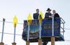 The menorah was lit Sunday at 3:30 p.m. and will continue to be lit nightly through sundown on December 14 to celebrate the eight nights of Hanukkah. State Assemblyman Rep. Dan Benson (D-14th District) and New Jersey State Sen. Linda Greenstein (D-14th District) lit the menorah along with local business owners. The menorah is 32 feet tall, the height of the menorah in Rockefeller Center, which is billed as “The Largest Menorah in the World.” 32 feet is the highest legal size a menorah can be, according to Jewish law, Rabbi Eliezer Zaklikovsky of the Chabad Jewish Center of Monroe tells Patch.