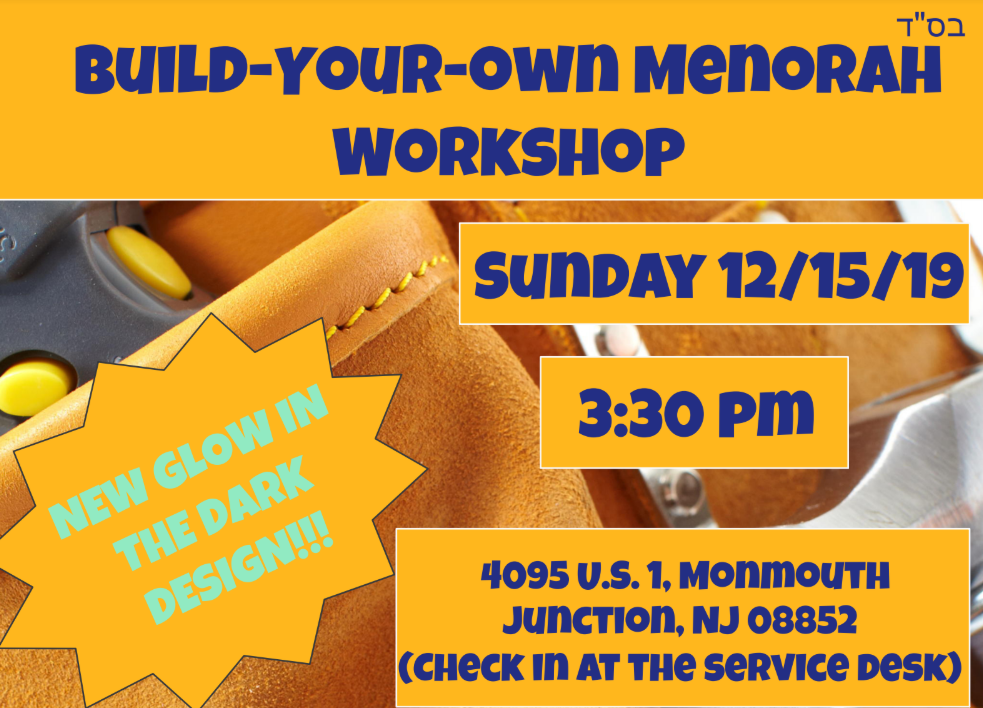 SOUTH BRUNSWICK, NJ — The Chabad of North and South Brunswick will hold a build-your-own menorah workshop this Sunday, Dec. 15 at the Home Depot on Rt. 1 in Monmouth Junction.