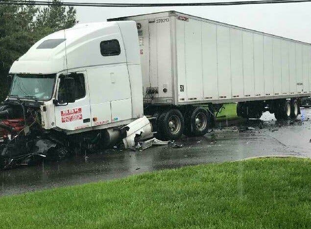 This is a picture of the crash scene above, provided by South Brunswick police. A tractor trailer got into a motor vehicle accident, and there was fuel spilled on the roadway.