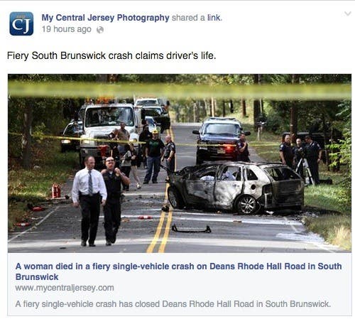 At 1:55 p.m. police received several 911 calls reporting an accident on Deans Rhode Hall Road about a quarter mile west of the New Jersey Turnpike overpass.