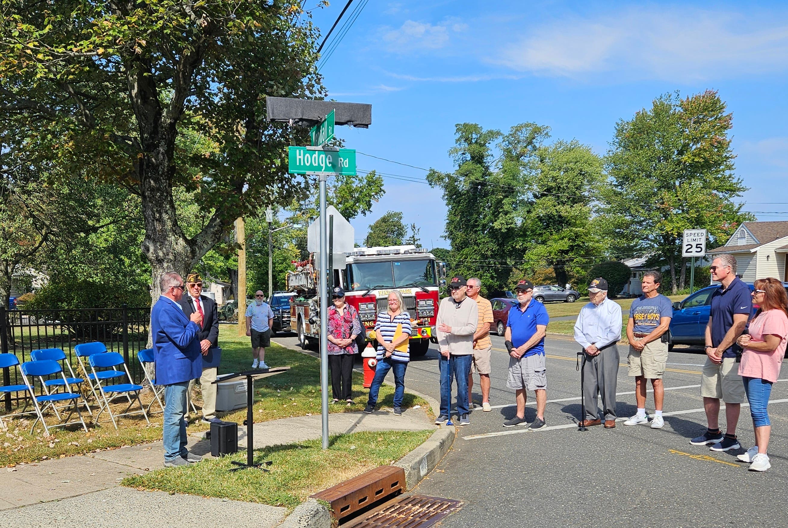 The Township held a Veteran Street Sign Dedication Ceremony at the intersection of Kendall Road and Hodge Road in honor of local veteran Raymond Doscher, one of the first residents of Kendall Park.