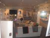 Each room has its own color scheme, complimented by art pieces and creative décor. Throw pillows doused with color and texture stood at attention on each bed. One bedroom was deep orange with contrasting reds and blues. Another was decked in greens with purple accents that made pink, orange and blue paintings jump off the wall. Tucked behind the modern kitchen was a giant indoor swimming pool lined with windows and decorated with a bright blue rug, modern furniture, and several works of art.
