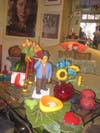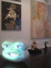 An avid collector of all kinds of visuals, Bell displays her passion everywhere you look. There are paintings, photographs, prints, ceramics, sculptures made from recycled materials, and crafts. Works by emerging as well as established artists—many from New Jersey-- fill the home and come in every size, from a tiny glass figurine or miniature furniture piece to enormous photographs and paintings that take up an entire wall. Some of the work is dark and disturbing, other pieces are whimsical and ironic.