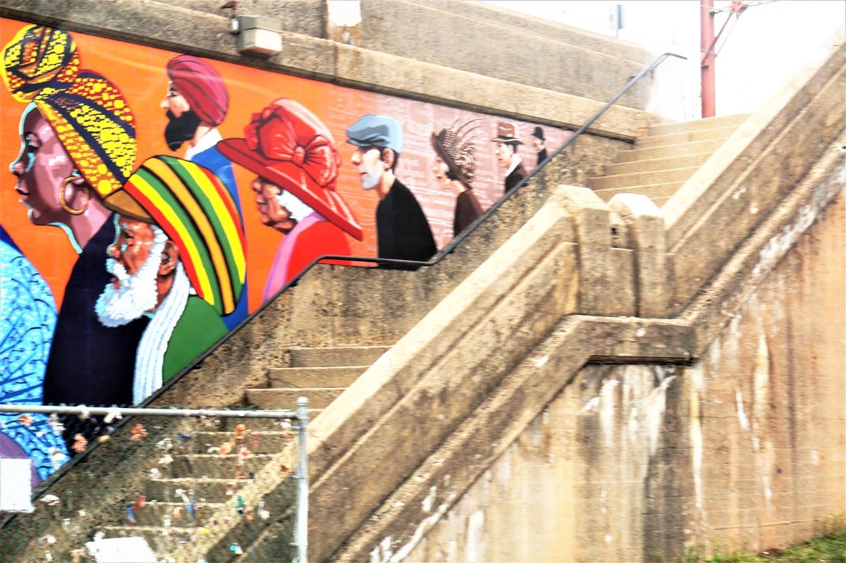 For those that don't know Orange, NJ was actually the center of the hat industry in the 19th Century. It was one of the largest employers in the area, manufacturing over four million hats, and saw the start of the great Stetson & Company among others. Hence the murals reference to hats.