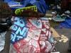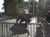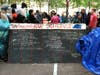 I guess the negative commentary must be generated by people who oppose the protester's message — not how they are peacefully delivering it. In typical New York style, the protesters have created a rather well organized mini city within the confines of Zuccotti Park — a small park made entirely of of pavement. There are different areas including an array of sleeping areas, 2 different locales for musicians/bands to play inspiring music, a flagpole area with 5-6 hand made flags with various messages on them and small circles of people exchanging ideas to better define their message. There also is a huge buffet table where delicious looking sandwiches, vegetables and organic Vermont apples were being distributed at no charge to pariticpants wearing badges of identification.