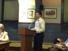 Tolley was referring to the Clean Sweep South Orange members in the room. The volunteer based group, founded by South Orange resident Matt Mattheiss and his son, Derek, walks down the streets of South Orange and picks up litter and helps cleans the streets for businesses. The Chamber of Commerce funds the group and has purchased the apparel and supplies for them.