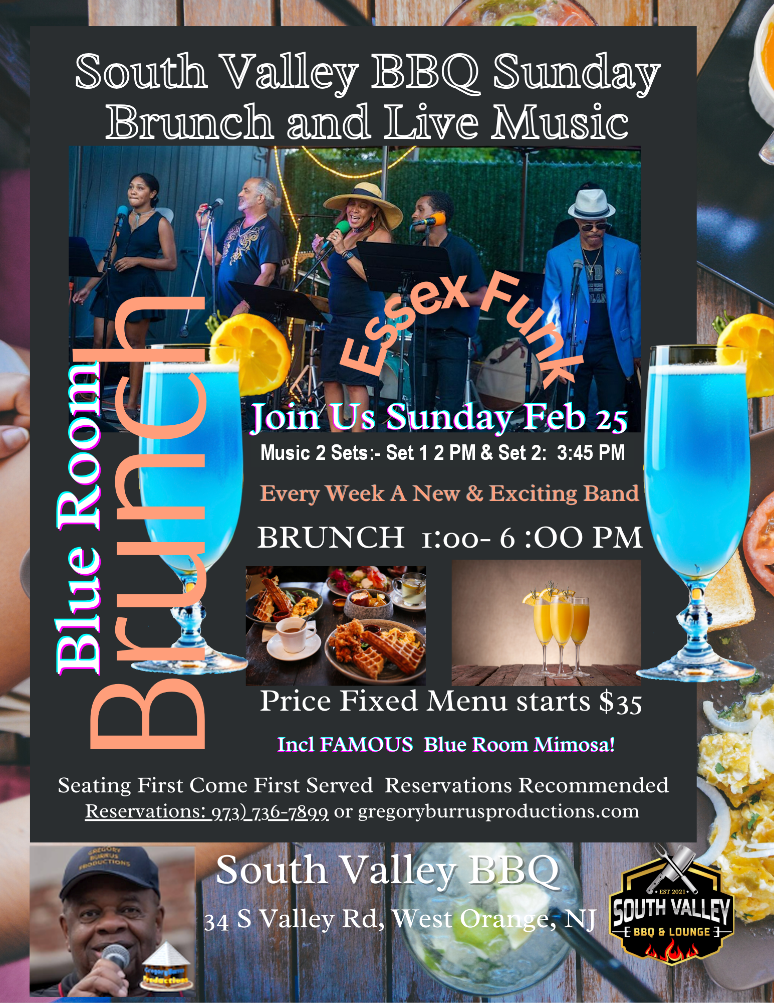 Get Ready for a Real Funky Explosion of Live Soulful Music while enjoying a great Sunday Blue Room Brunch at South Valley BBQ and Lounge.