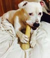“My name is Sunny and I’m 6 years old. I’m a boy and an American Bulldog mix. I’m 100 percent housebroken and love to cuddle with people I know. My favorite game is keep-away. I am very intelligent and love to learn new things. I have been crate and obedience trained by a renowned dog trainer. I would love a fenced-in yard to run and play in. My perfect forever home would be a single-pet household. Because I am very strong and a bit protective, as bulldogs tend to be, I would do best in an adult only home with people who are confident and familiar with the breed.”