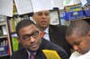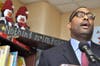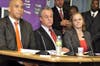 Taylor, flanked by Newark Mayor Cory Booker, state-appointed Newark Schools Superintendent Cami Anderson and acting New Jersey Education Commissioner Chris Cerf, addressed a room of reporters at the city's Harriet Tubman School.