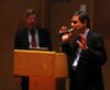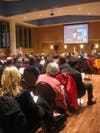 The assembled crowd, which included a number of Seton Hall students, was invited to comment following the PowerPoint presentation. Robert Chandross, an economist and frequent commenter at Board of Trustee meetings, stated that in light of the economy, it's a bad time to be proposing the addition of more retail space in South Orange, given the number of vacancies. He also questioned the strategy of bonding for infrastructure improvements to support the desired private investment.