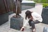 The monument's focal point is a statue of a little girl clutching a teddy bear. Behind her stands a large statue of an open book, in which Essex County's 57 victims of the attacks are set in iron. Behind it, a statue of an eagle, wings open, soars majestically, as if flying from New York City.