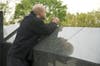 Arriving one at a time, each visitor somberly made their way to the stone and metal monument, to gaze across the mist at the New York City skyline that was so dramatically altered on that September day nearly 10 years ago.