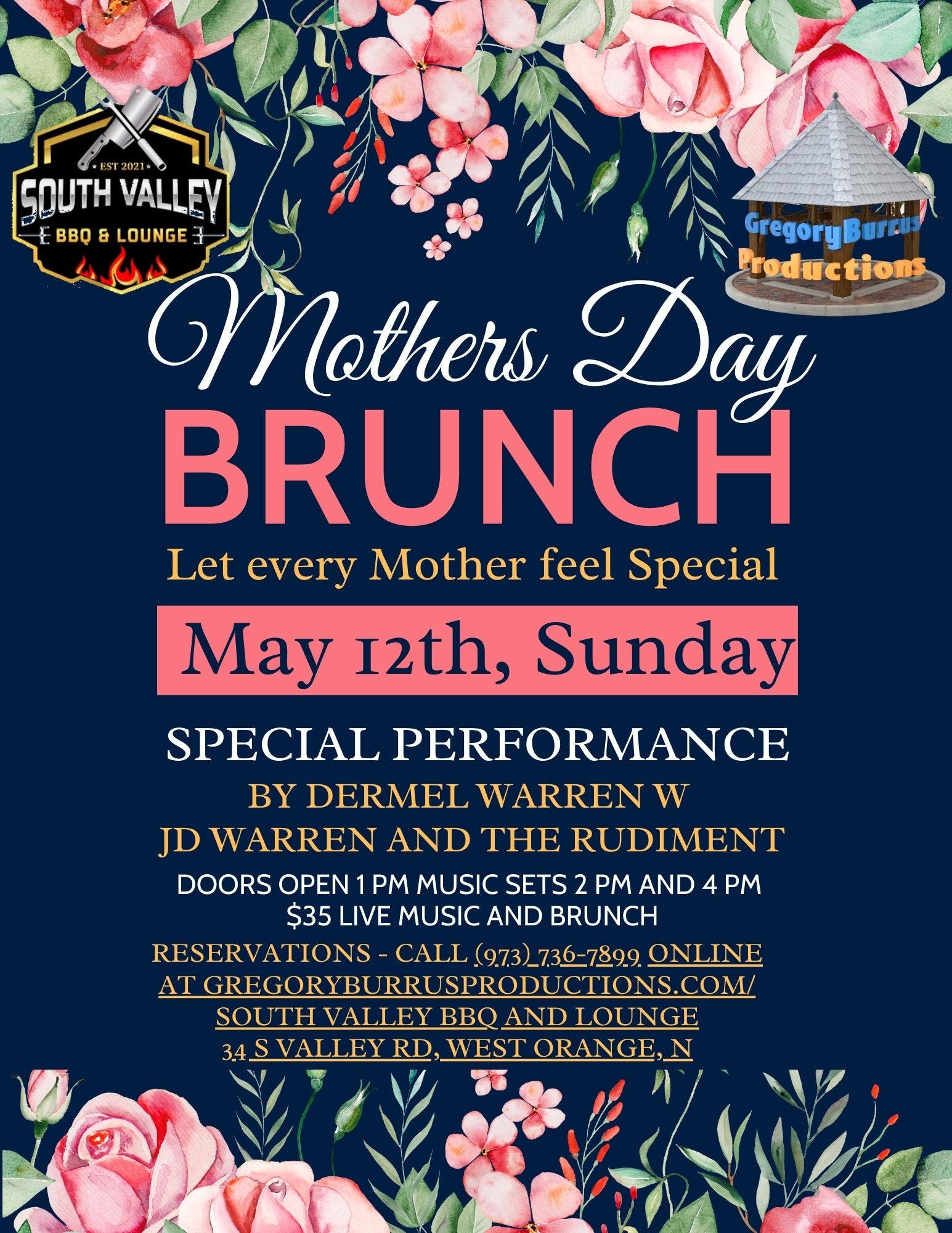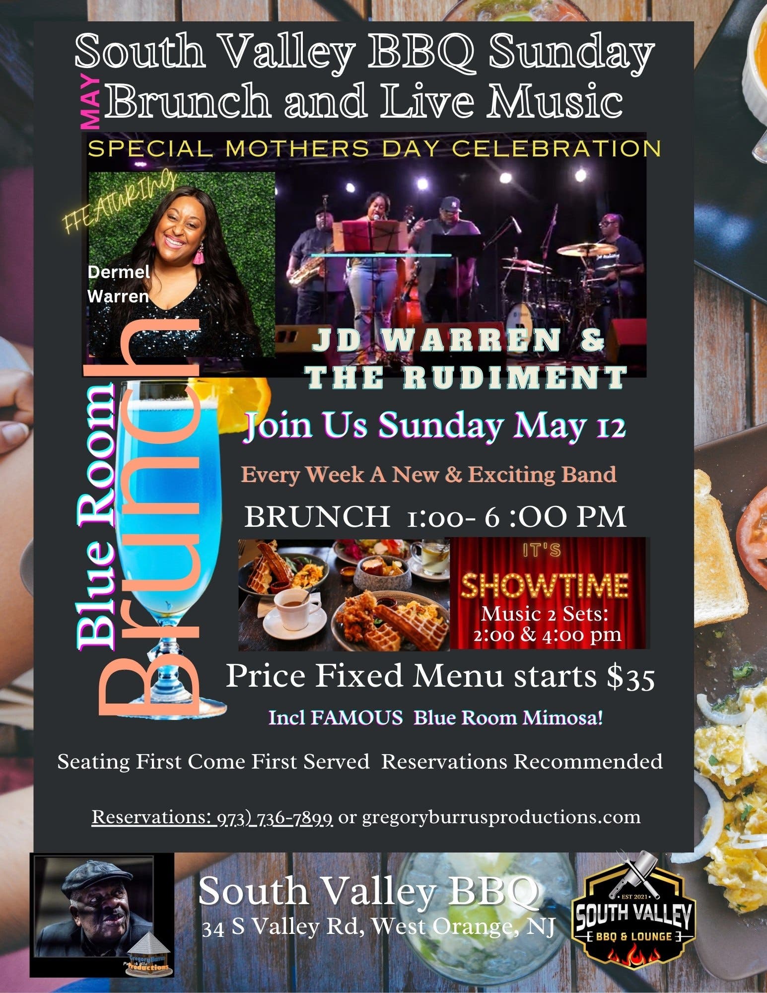 Please join us for a Special Mothers Day - Live Music and a Blue Room Brunch on a Sunday Afternoons and let's hear some great live music. Click Here to Register and Reserve your space. Come join us at South Valley BBQ and Lounge for an unforgettable live music Brunch in the Blue Room. Every Sunday,...