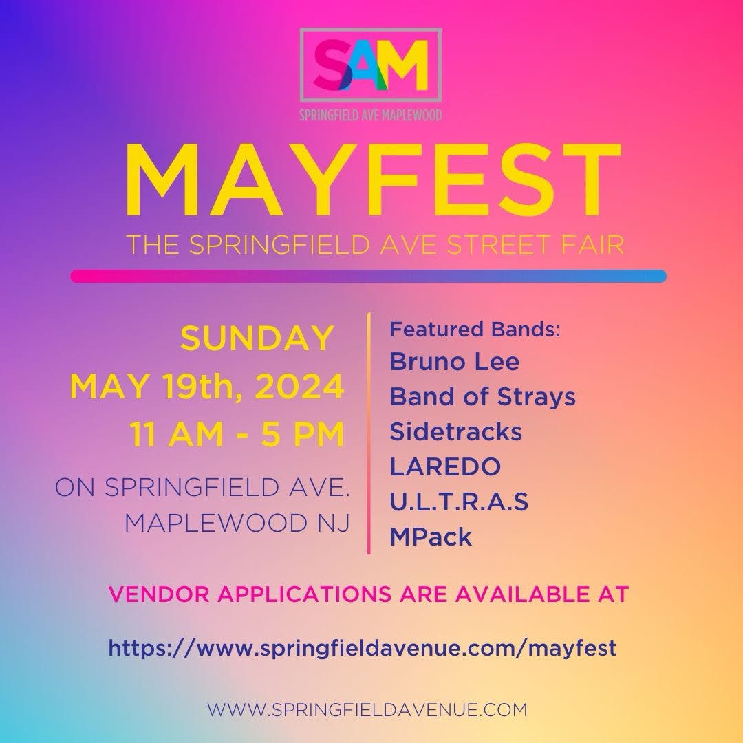 After a two-year hiatus, MayFest is returning to Springfield Avenue for a day of vendors, activities, and family fun! This year's street fair will include: