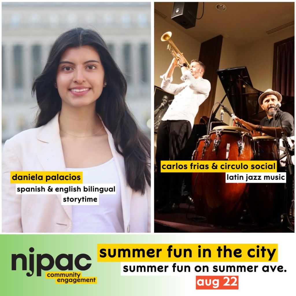 Daniela Palacias and Carlos Frias and Circulo Social in Phillips Park, Newark for @NJPAC and njpac.org/parks. Aug 22 5 - 7 pm