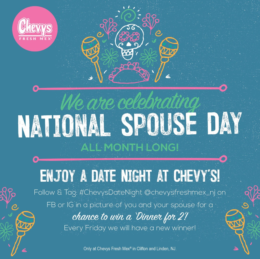 Jan 26 is National Spouse Day being celebrated at Chevys Fresh Mex in Linden and Clifton, NJ