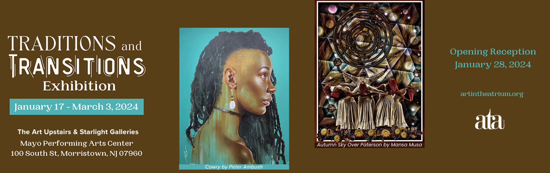 Sun Jan 28 Art in the Atrium (ATA) Exhibit BHM "Traditions and Transitions." MPAC Morristown, NJ. 3 pm – 6 pm visit artintheatrium.org