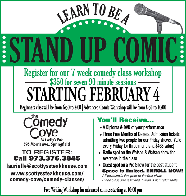 All the information is at http://www.scottyssteakhouse.com/comedy-cove/beginner-comedy-classes/
