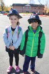 Walton Kindergarteners Sophia and Adrian stopped to smile with Springfield Firefighters during a fun and educational visit . Pre-K students Sanuka and Isabella were excited to wear their new fire hats after the visit. The students listened intently to the lesson on fire safety and equipment.