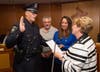 The department's newest Officer Michael Alesandro was sworn in with his wife and parents standing at his side during the swearing in ceremony.