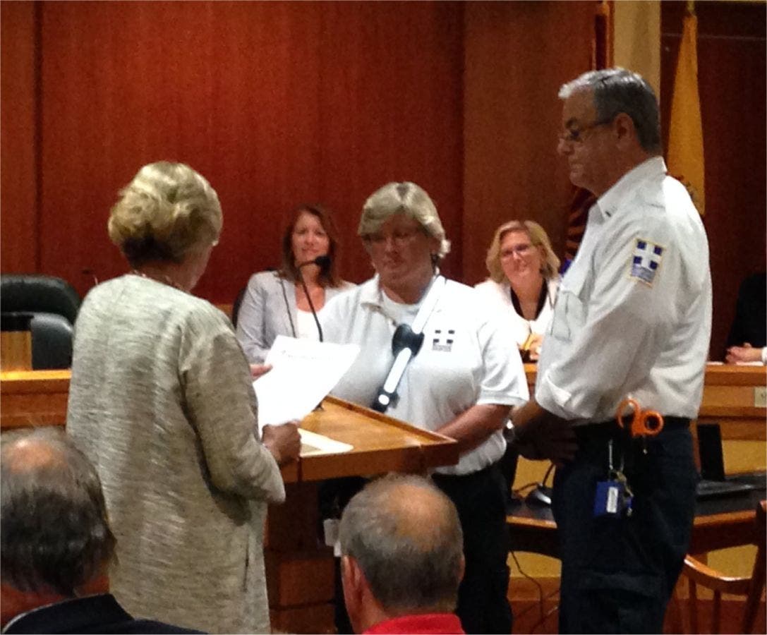 Mayor Nora Radest has issued a Proclamation designating September as "Summit Volunteer First Aid Squad Month". During Tuesday’s Common Council meeting, the Mayor acknowledged the squad and its all volunteer membership for their dedicated service to the Summit community for over 50 years. She also noted that the First Aid Squad’s annual fund drive will launch later this month and encouraged all to generously support the squad. Accepting the proclamation on behalf of the Squad were President Mike D’Ecclessis and Chief Kari Phair. Mr. D’Ecclessis a, volunteer for more than 35 years, thanked the Mayor, members of Council, all the city agencies and the citizens of Summit for their generous support over the past 54 years.
