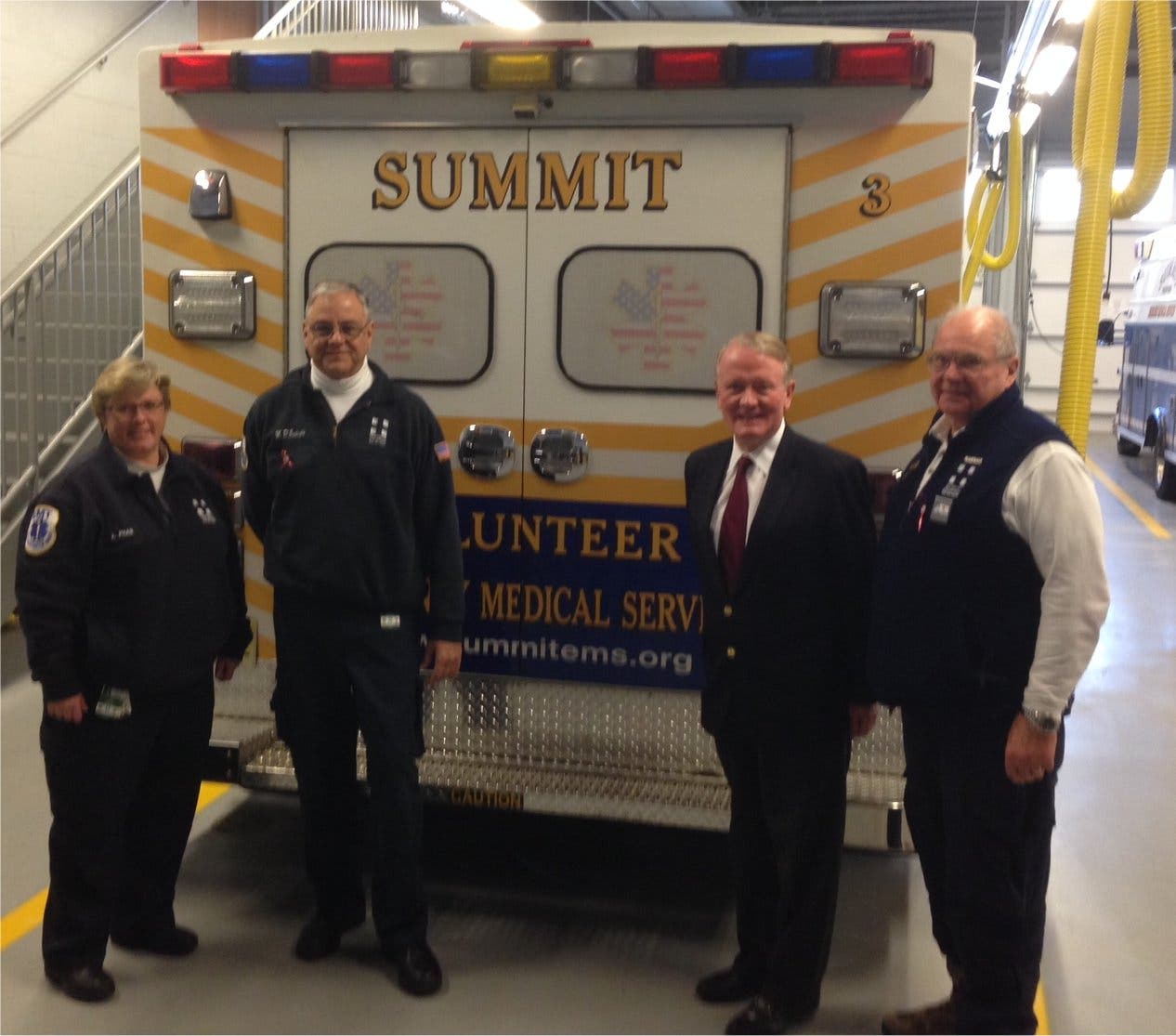 Congressman Leonard Lance recently paid a visit to the new headquarters of the Summit Volunteer First Aid Squad. After congratulating squad volunteers for being selected as the EMS Squad of the Year by the EMS Council of New Jersey, the Congressman and his staff were given a tour of their new facility and overview of the of the Squad’s mission and response equipment. Lance recently agreed to support an application by the First Aid Squad to the Federal Emergency Management Agency (FEMA) for a grant to purchase new life saving equipment. The Lucas Chest Compression System is designed to provide near perfect CPR compressions and can significantly improve the chances of survival of cardiac arrest.