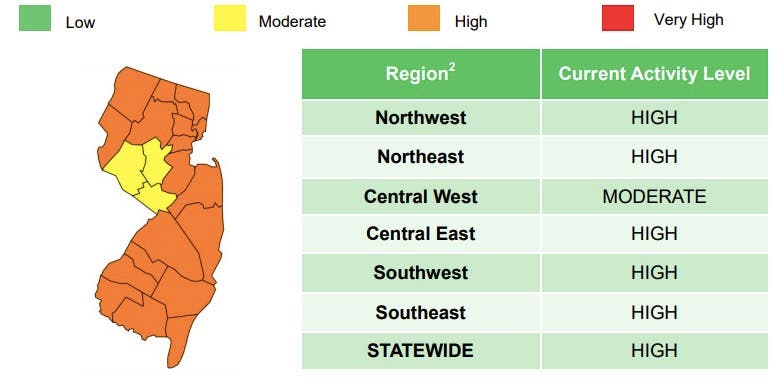 The disease’s impact is reflected in the state Department of Health's most recent "COVID-19 Activity Level Report," issued weekly. Union is in the "orange" zone.