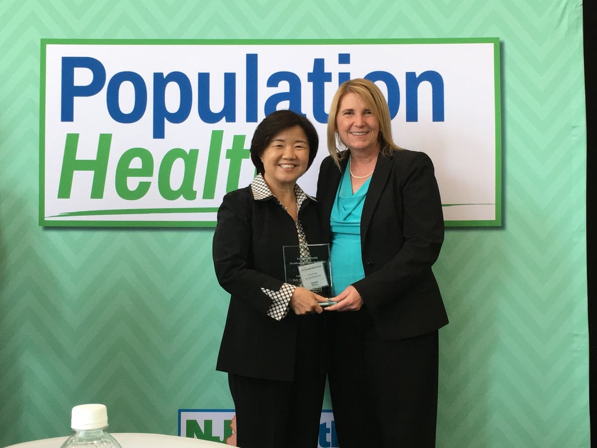 Photo: Kyung Hee Choi, vice president of Asian Health Services at Holy Name Medical Center, accepting the award for Population Health Hero from New Jersey Department of Health Commissioner Cathleen Bennett. — Courtesy of Holy Name Medical Center