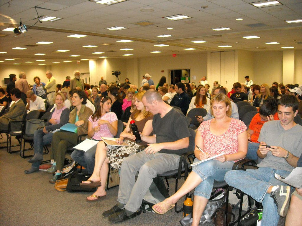 None of that opposition was evident Thursday. Hansen, a slim and soft-spoken man, spoke to a largely appreciative audience.
