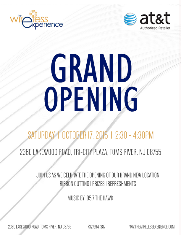 The store will celebrate its Grand Opening with special a ceremony on October 17th from 2:30-4:30pm. The Wireless Experience invites the community join them for a ribbon cutting ceremony, complementary gifts, prizes, food/refreshments and a live broadcast from Radio station 105.7 The Hawk.