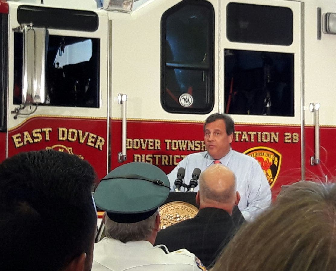 Gov. Chris Christie, at the East Dover Fire Company Aug. 26. Karen Wall photo