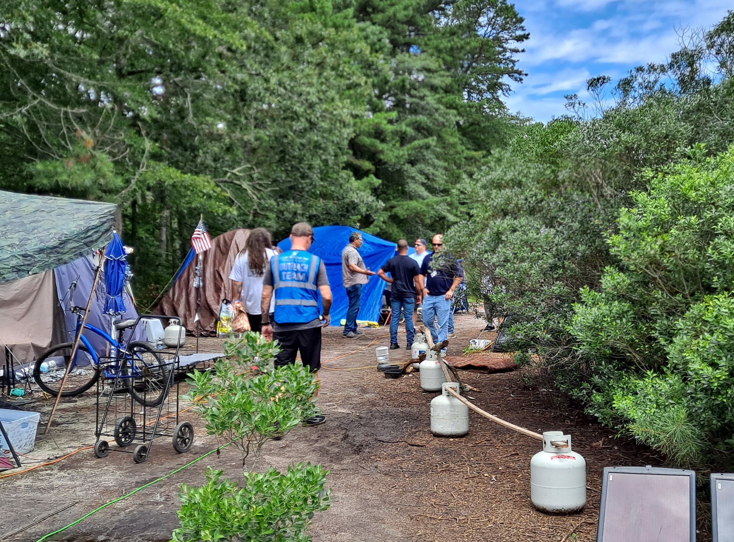 After investigating to pinpoint the camp's location, Little pulled together a group of people to reach out to the residents and on Thursday, made their first trek to the camp. There were caseworkers with the Ocean County Department of Human Services, the Board of Social Services, the Ocean County Health Department, and Ocean County Senior Services. There were representatives of the Affordable Housing Alliance, Habcore, The Mental Health Association, and Bright Harbor Health Care with its On P.O.I.N.T. program.