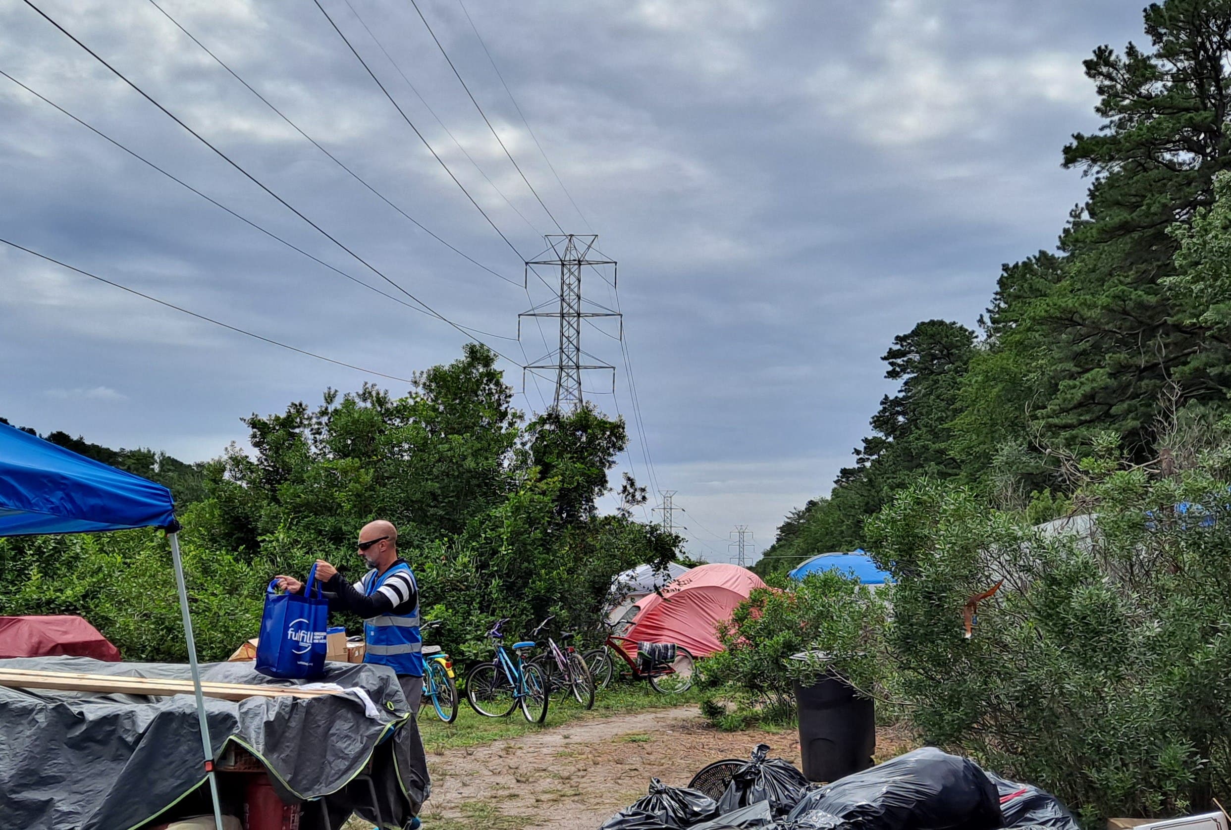 Mike has been without a permanent home for more than a year and moved into the encampment, near Jersey Central Power & Light's high-voltage lines that traverse Toms River, as a last resort.