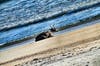 "Right now he's at the ocean's edge behind CVS, bordering Seaside Heights," Stocco said about 3:30 p.m. "It's just sunning itself on the beach. Every time we get close he runs back into the ocean."