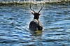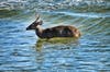 Why the buck is swimming in the water remains a mystery, but he seems to be in no hurry to leave, police said.