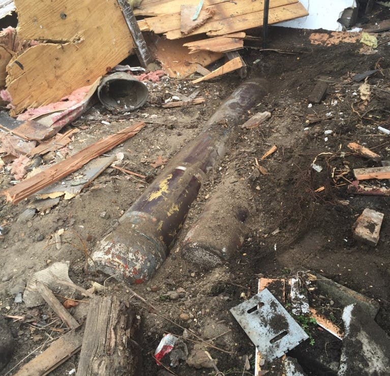The torpedoes were uncovered as workers removed the building formerly called the Shanty House, which was an old gardening and antiques business on Atlantic City Boulevard in South Toms River. The property, which also includes the Meineke Car Care Center next door, is owned by Mark Ott.