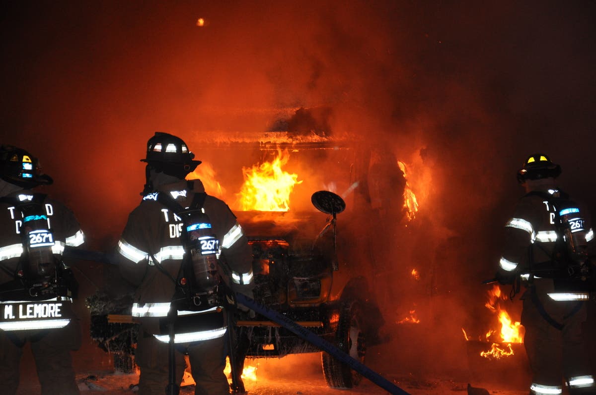 Toms River Police Officer John Minor was on patrol about 2:40 a.m. along Route 37 when he saw smoke on the south side of the road, Stocco said. Minor searched the area and found the smoke was coming from behind 2301 Industrial Way, where he found several vehicles engulfed in flames, Stocco said. Two Chevrolet buses and one Ford bus suffered extensive damage, he said, and a Ford F150 pickup received some minor secondary damage, Stocco said.