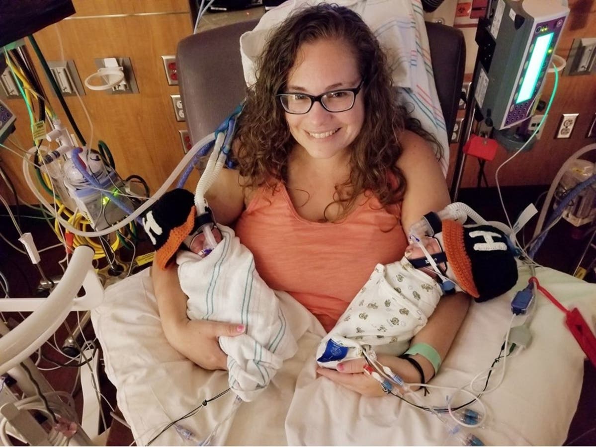 The boys have made great strides since they were born May 4 at 24 weeks' gestation, Krean said. Wyatt, who weighed 3 pounds at birth, now weighs more than 11 pounds, and Holden, who weighed just over a pound, is now 9 pounds, 1 ounce. The happiness over the twins' improvement comes with the sadness of knowing Sawyer, their triplet brother, did not survive. He died about two weeks after the babies were born, Krean said.