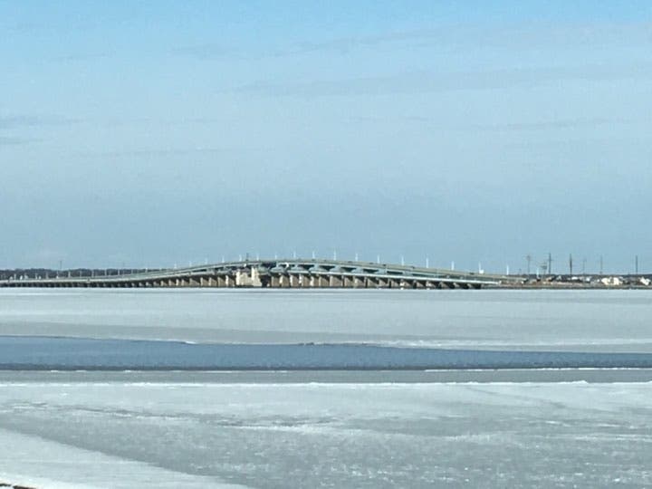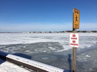 But one word of caution: Just because the top of the bay has frozen doesn't necessarily mean it's safe to walk on or drive on. Generally, it takes a foot of ice to hold a vehicle, and because Barnegat Bay has constant currents due to the tides, it takes much longer to freeze than a freshwater lake takes to freeze.