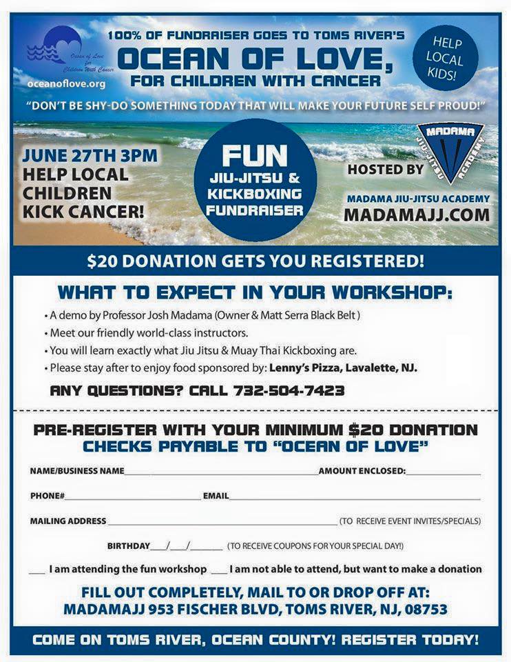 On Saturday, June 27, Madama Jiu-Jitsu Academy will offer an introduction into Brazilian Jiu-Jitsu and Muay Thai Kickboxing at their first community fundraising workshop benefiting Ocean of Love, a non-profit dedicated to helping local children with cancer and their families for over 25 years.