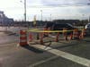While construction at that intersection was ongoing, police directed traffic into the plaza, allowing left turns into the shopping center at an entrance before the traffic light. However, that is now closed off, with traffic cones lining Route 166's center line.