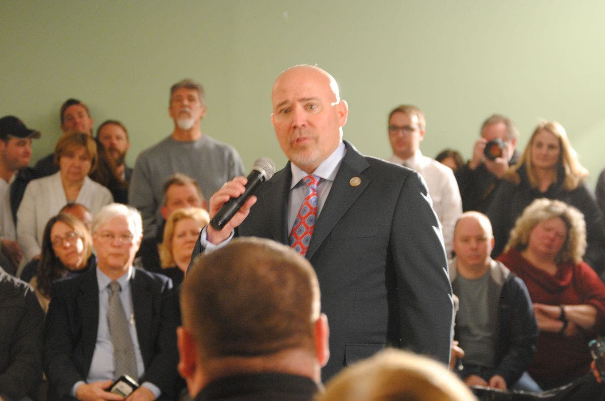 Tom MacArthur, speaking at the March 6 town hall in Waretown. Photo by Karen Wall