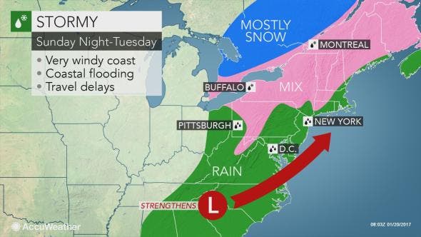 But it won't matter: Heavy rain, windy conditions and coastal flooding are all possible for Sunday afternoon through Monday night.