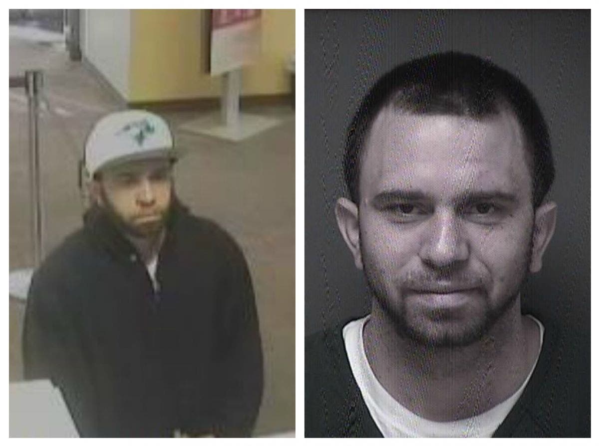Bank surveillance photo from robbery via Toms River police; Richard Winiavski photo via Ocean County Corrections Department