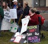 Outside the firehouse, however, more than three dozen protesters gathered on the front lawn of the firehouse in the rain to give a cold shoulder to not only the tax reform proposal but to MacArthur in particular. They held signs urging MacArthur to vote against the tax reform bill.