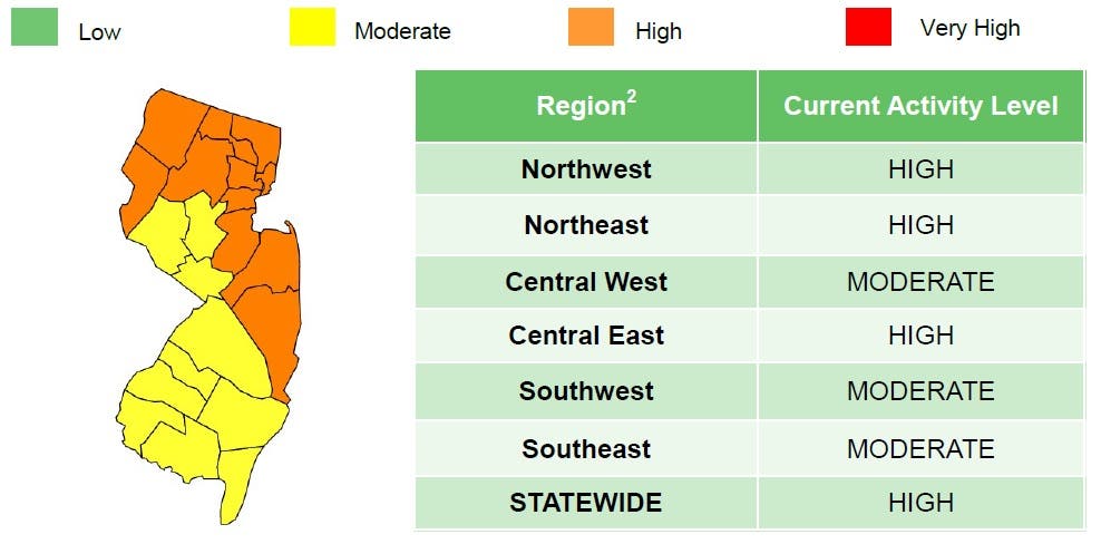 Ocean County has moved into the orange zone, according to the federal "state status report" on the pandemic. The rate of spread has slowed.