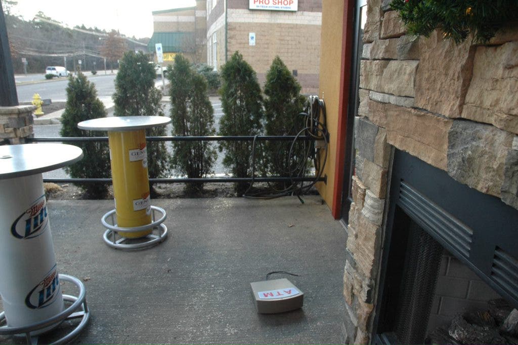 A foyer window was smashed and an ATM machine valued at $5,000 was stolen from Boston’s Restaurant early Friday morning, Toms River police said.