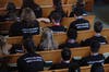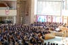 “There’s a sense of awe,” said Eugene Gere, the prinicipal of Donovan Catholic High School, as the 900 or so students who comprise the student body of the high school and the seventh and eighth grades at St. Joseph Grammar School sat in the pews of the church listening to remarks from Father Scott Shaffer before the pope’s speech began.