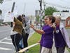 The stream of traffic on Water Street had been steady for the nearly 90 minutes the protesters had been holding up signs and chanting various messages, including "We won't go back." There were a sizeable number of vehicles that honked in support as they drove by, drawing cheers from the protesters. Only a few shouted rude comments. One guy in a pickup truck who was harassing protesters tore off when a Toms River police officer approached.