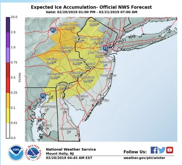 - All areas will likely see snow at the onset. A transition to a mix of sleet and freezing rain,and then finally rain, will occur through this afternoon and evening for most areas. Rain will then continue tonight and end early Thursday morning. Over far northern NJ and the Poconos, precipitation may remain as a mix of sleet and freezing rain overnight.